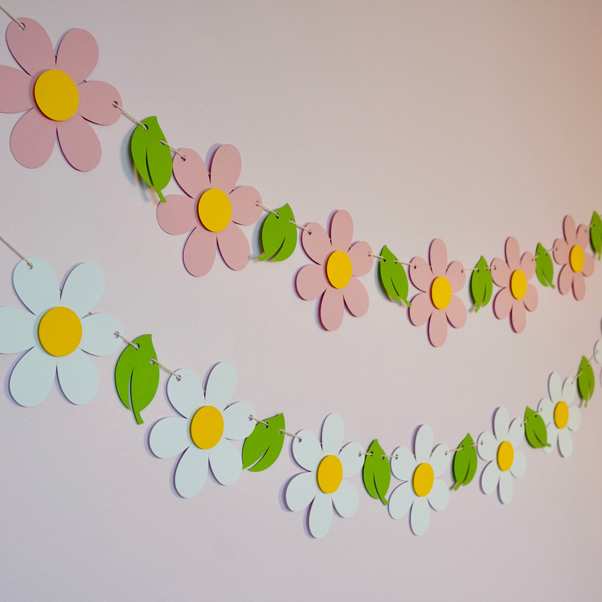 Diese handgefertigte Blumengirlande bringt mit zarten Farben und liebevollen Details Frische und Freude in jedes Zuhause. Ideal als Dekoration fürs Mädchenzimmer oder für besondere Anlässe.