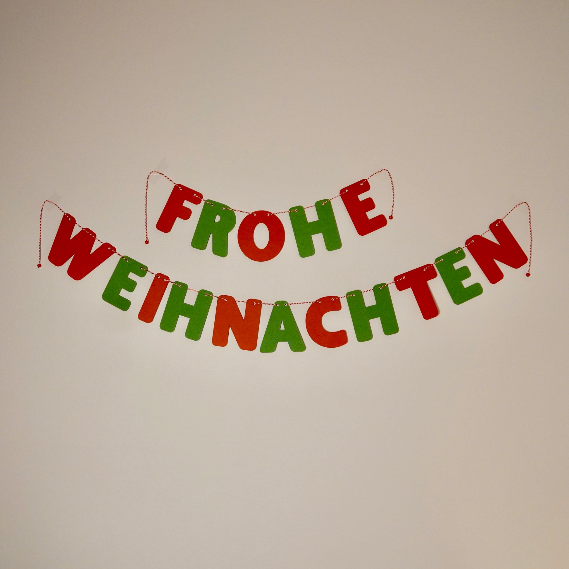 🎁 „Frohe“ und „Weihnachten“ auf zwei separaten Kordeln – ganz nach deinem Stil.