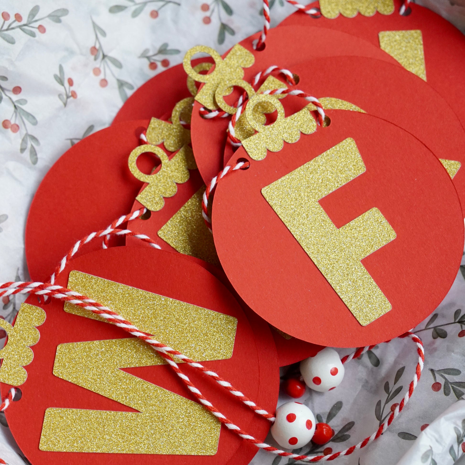 Diese wunderschöne Papiergirlande „Frohe Weihnachten“ bringt im Handumdrehen festliche Stimmung in jedes Zuhause, Büro oder Geschäft. Die Girlande besteht aus hochwertigem, kräftigem Papier in klassischem Weihnachtsrot, kombiniert mit goldenen Buchstaben, die auf runden Elementen angebracht sind – ganz wie kleine Weihnachtskugeln.