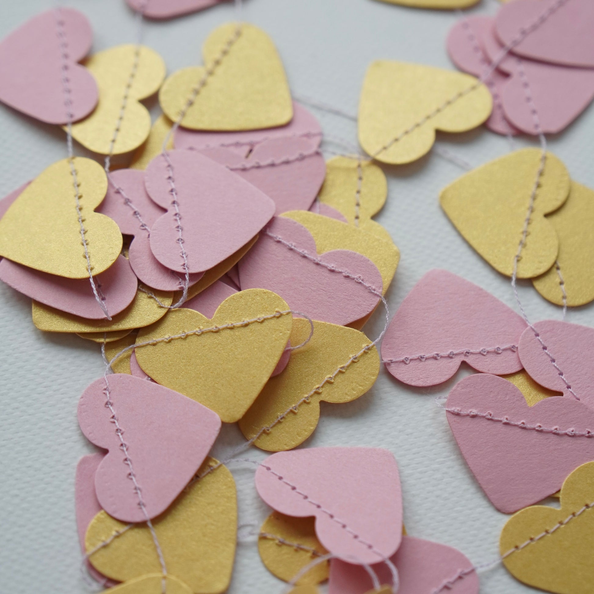 Papiergirlande „Herzen“ – Zartrosa & Gold, handgefertigt mit Liebe