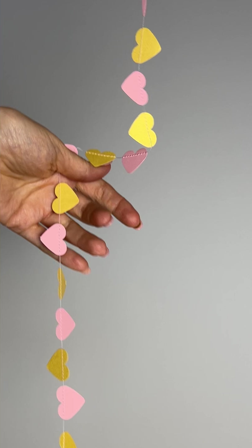 Zarte Papiergirlande mit rosa und goldenen Herzen 💗 – handgefertigt, nachhaltig, kombinierbar & perfekt für Mädchenzimmer und Feste.