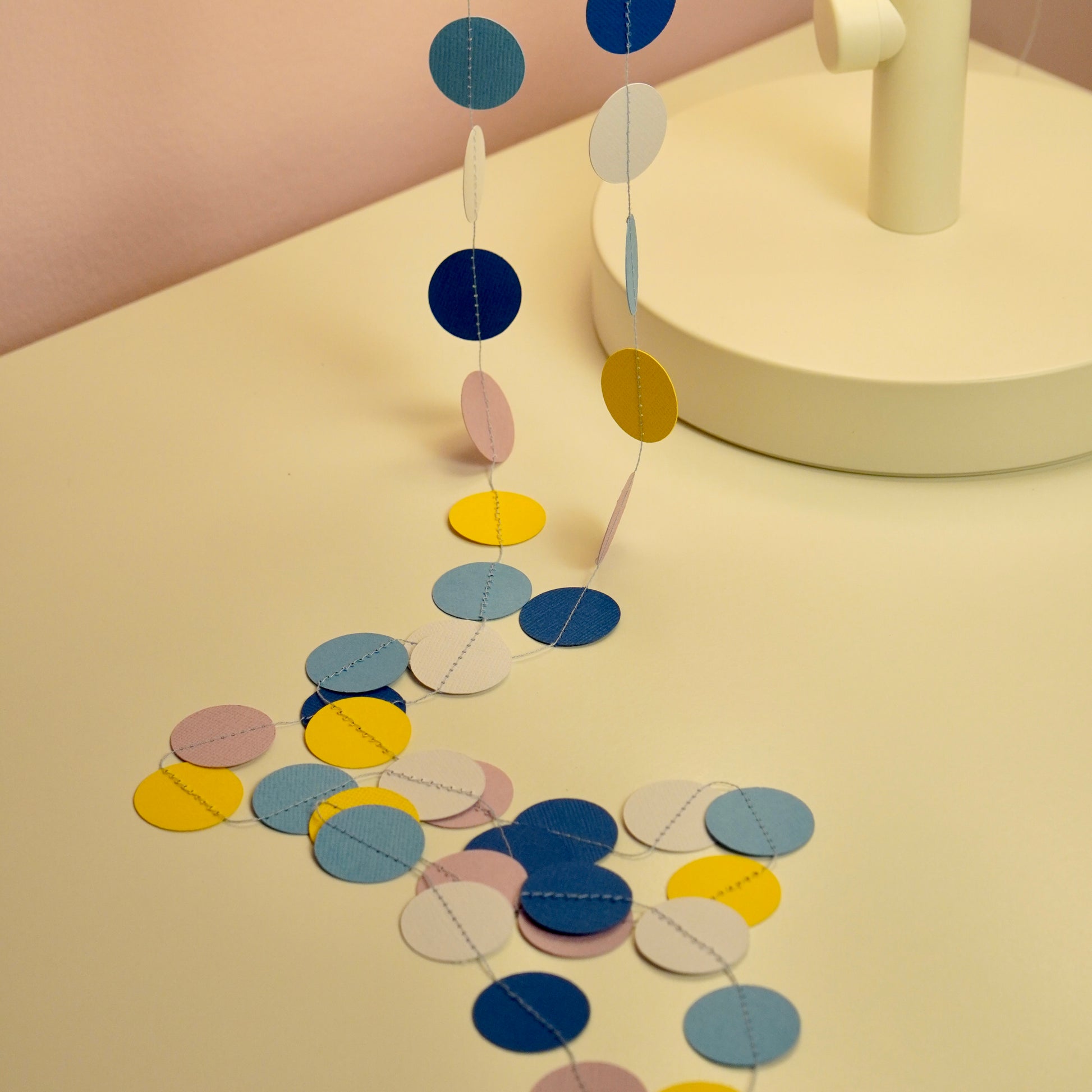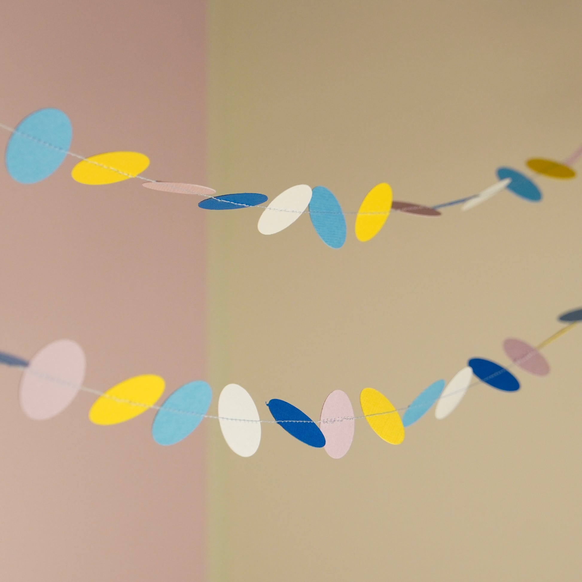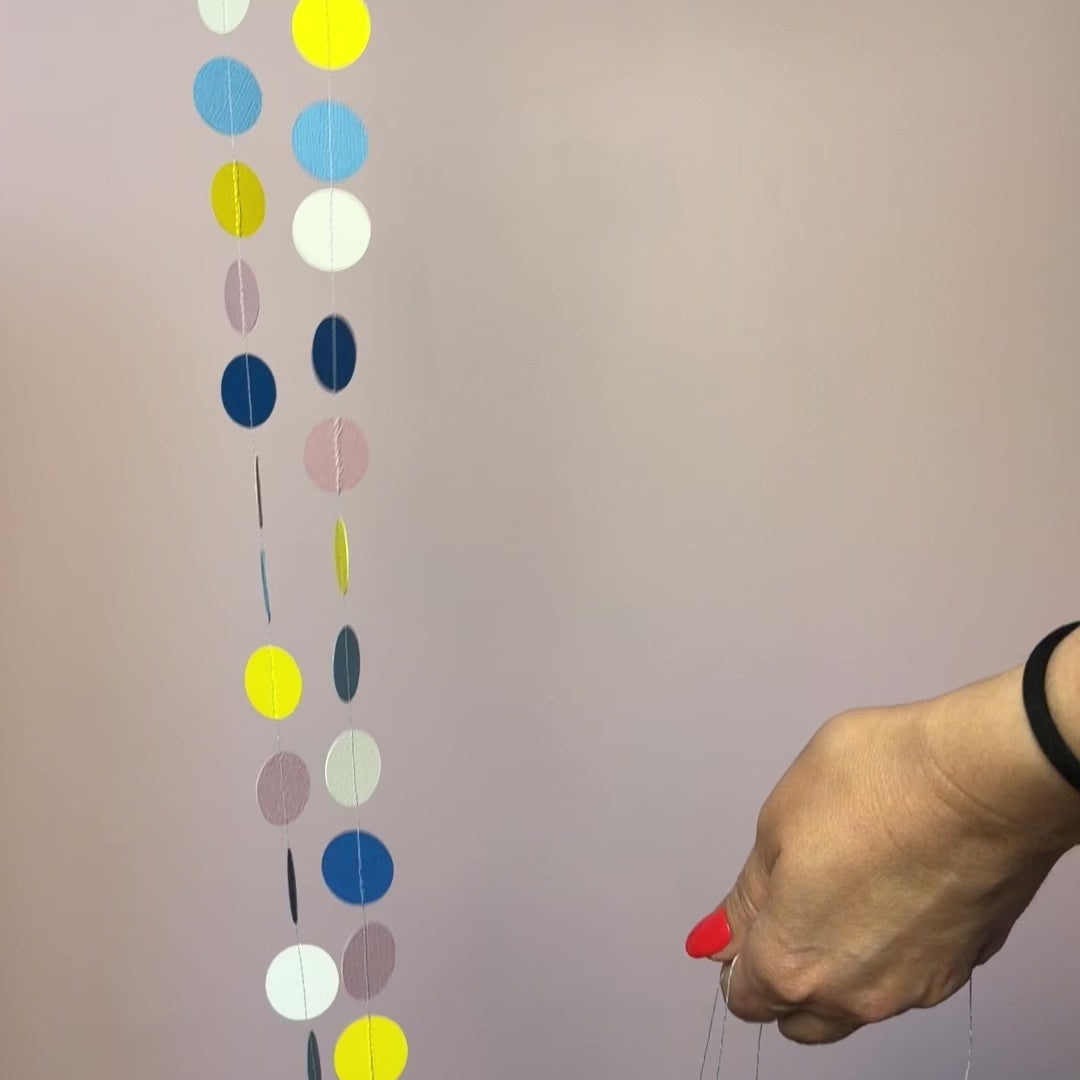 Eine farbenfrohe Kreise-Girlande aus hochwertigem Papier – ideal für Babypartys, Kindergeburtstage oder als fröhliche Raumdeko. Handgefertigt, nachhaltig und in zwei Längen erhältlich.