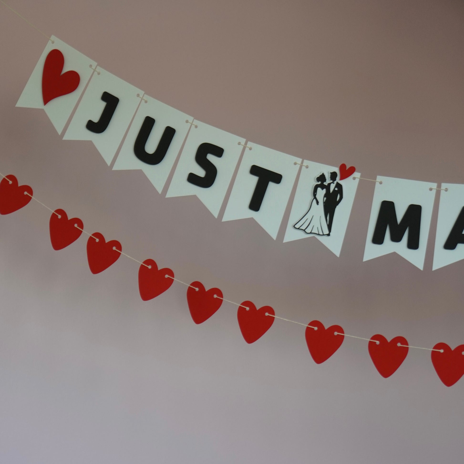 Sie ist sofort einsatzbereit, wiederverwendbar und lässt sich wunderbar mit anderen Girlanden kombinieren – zum Beispiel mit einer „Just Married“- oder „Love“-Girlande.