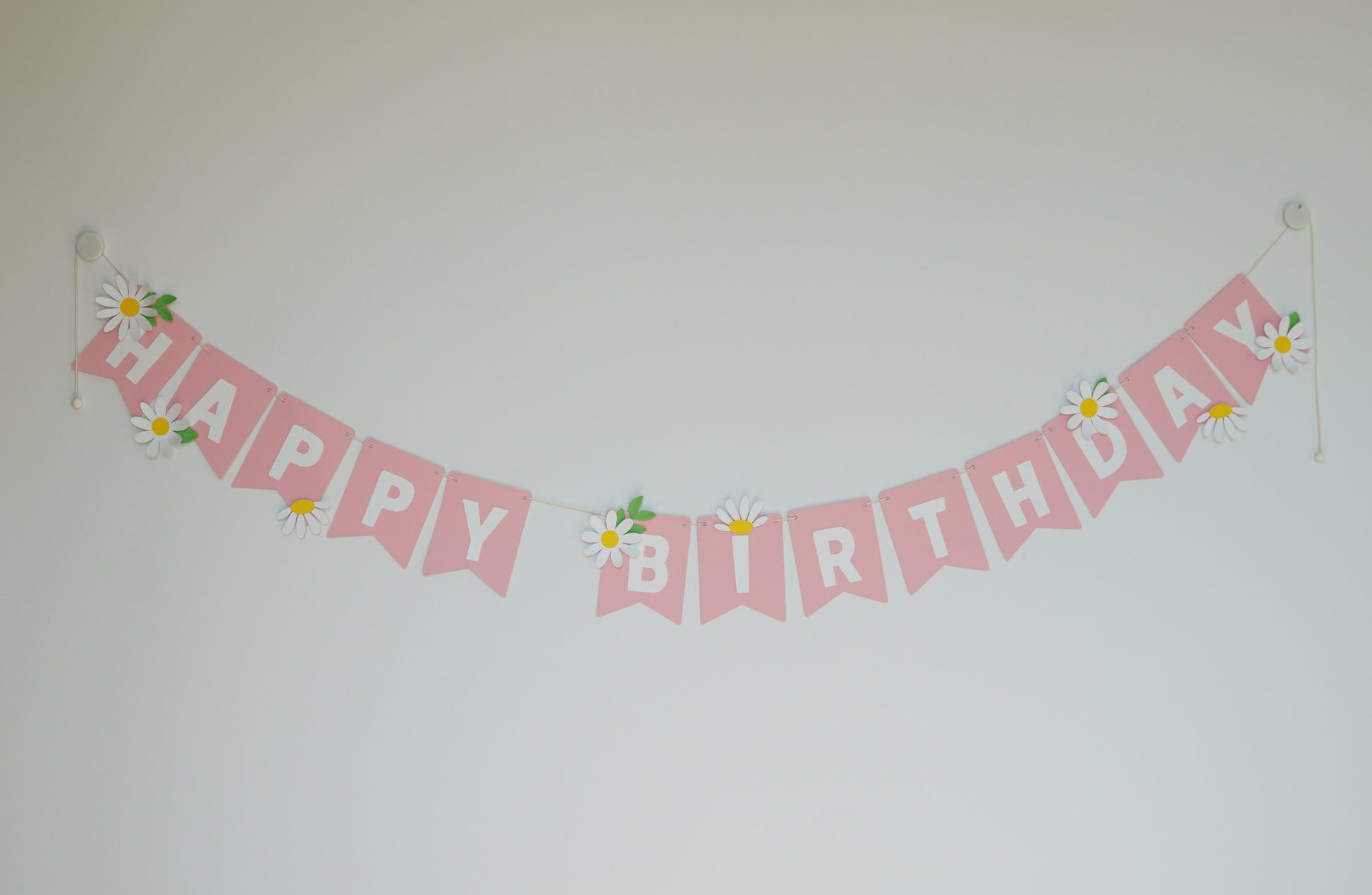 Diese handgefertigte „Happy Birthday“-Girlande in zartem Rosaton mit weißen Blüten macht jeden Mädchengeburtstag zu etwas ganz Besonderem. Auf Wunsch kannst Du sie mit einem personalisierten Namensbanner ergänzen ❤️